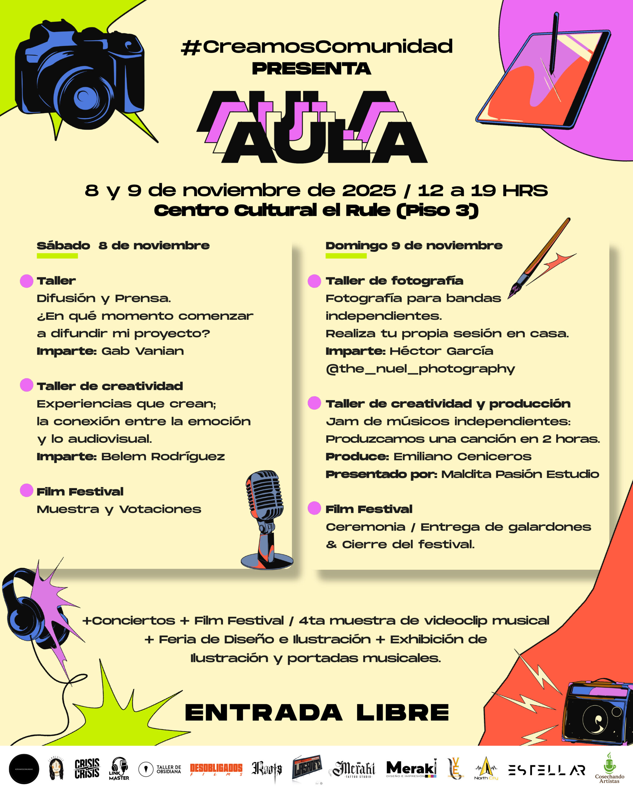 La sede será el Centro Cultural El Rule (Eje Central 6, Col. Centro, Cuauhtémoc, CDMX, a un costado de la Torre Latinoamericana). La entrada es libre y para todas las edades.