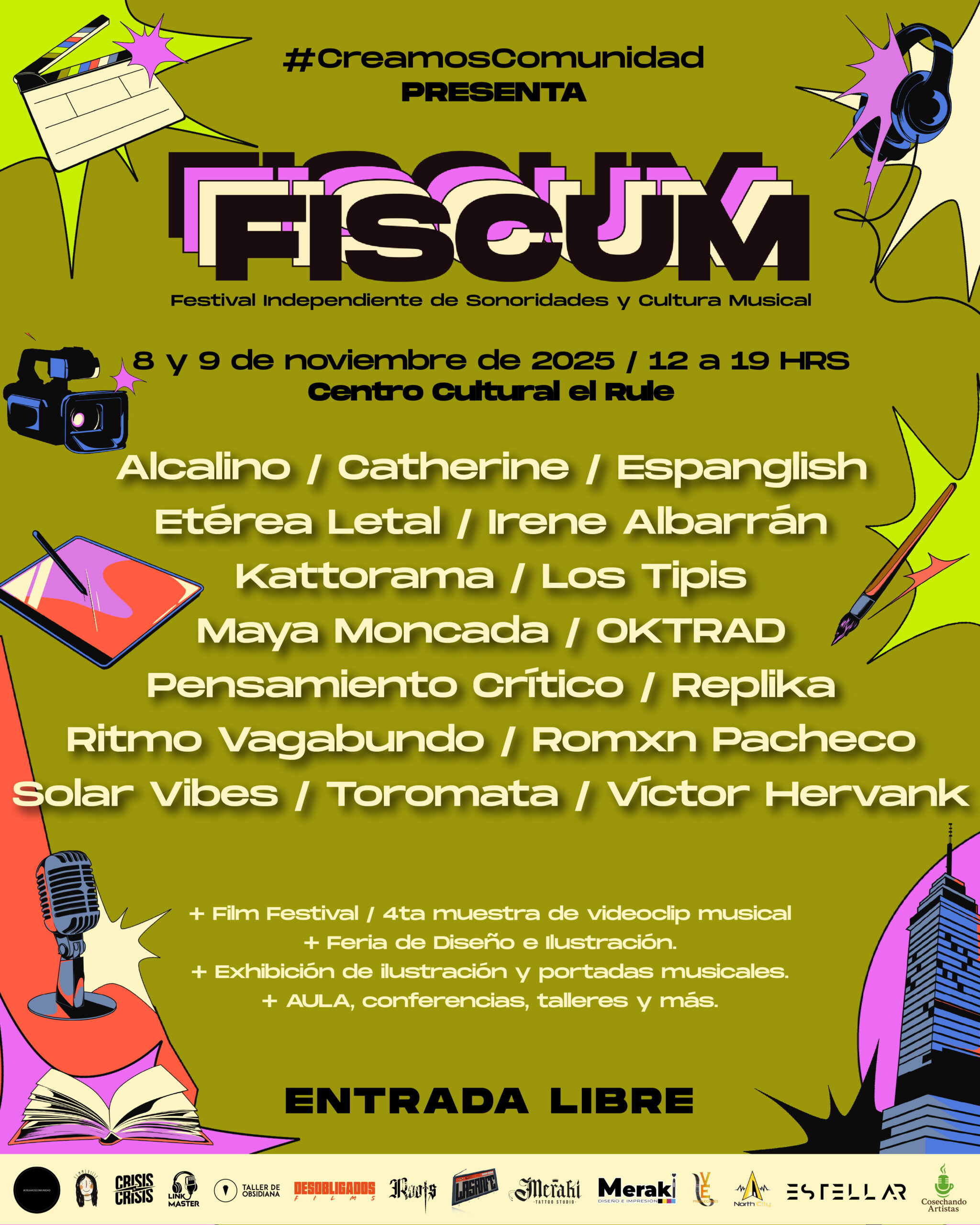 El Festival Independiente de Sonoridades y Cultura Musical (FISCUM) regresa este 2025 para celebrar su edición número 13 con dos días llenos de música, arte y cultura independiente. La cita es el sábado 8 y domingo 9 de noviembre en el Centro Cultural El Rule, en el corazón de la CDMX, de 12:00 a 19:00 horas.