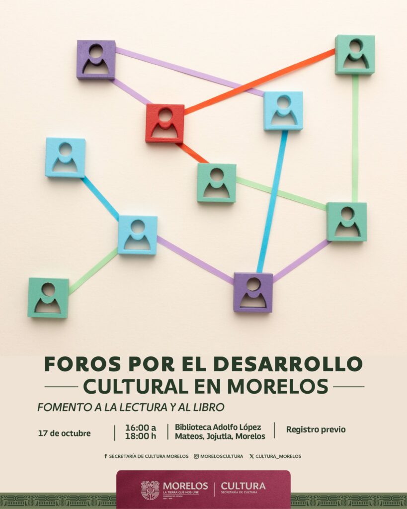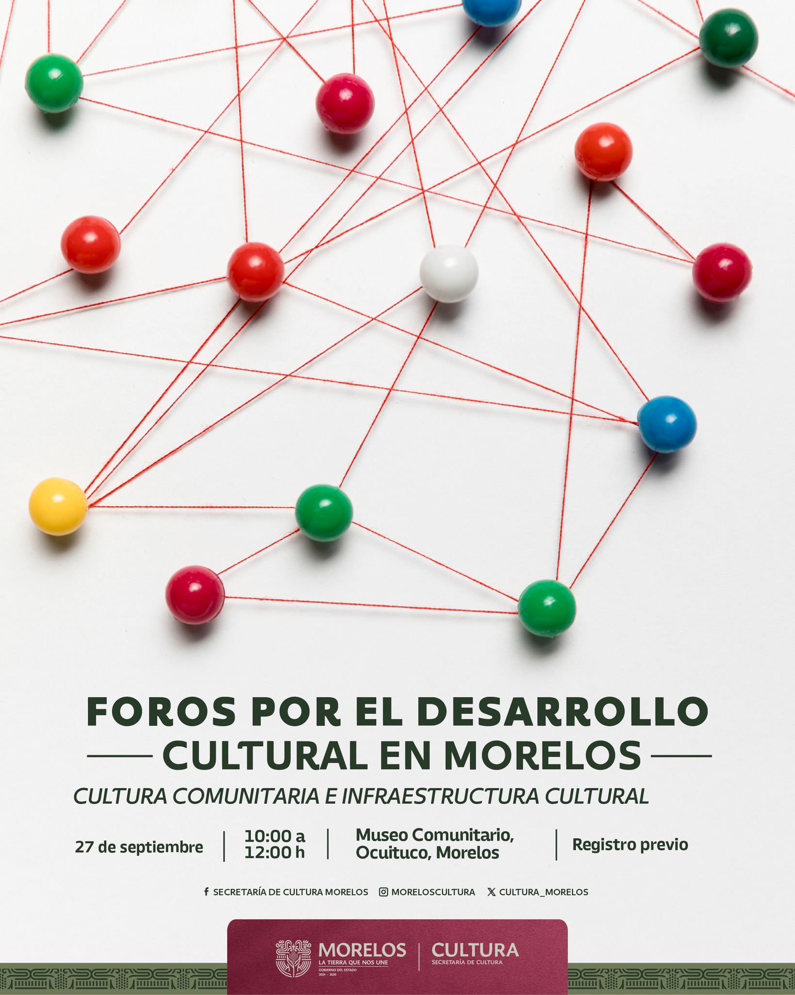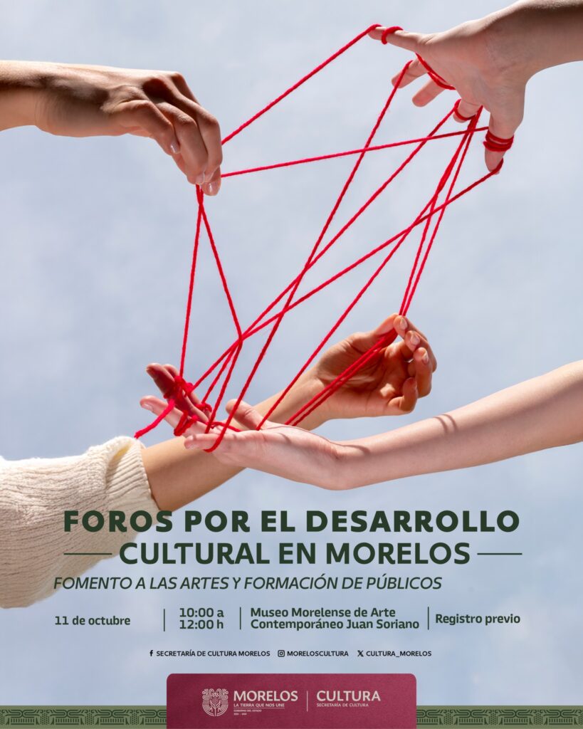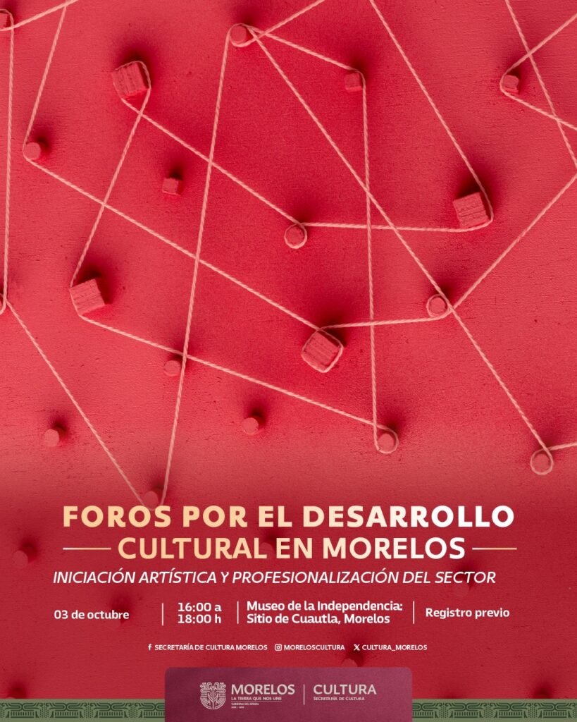 Con el propósito de fortalecer las políticas culturales en el estado e impulsar la participación ciudadana, la Secretaría de Cultura de Morelos realizará los Foros por el Desarrollo Cultural, espacios de diálogo que reunirán a artistas, gestores y comunidad en general.