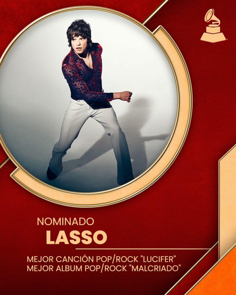 El cantautor venezolano Lasso, una de las voces más influyentes del pop-rock latino, celebra dos nominaciones en la 26ª Entrega Anual del Latin GRAMMY. Su más reciente producción Malcriado compite en la categoría Mejor Álbum Pop/Rock, mientras que el sencillo “Lucifer” se encuentra nominado como Mejor Canción Pop/Rock.
