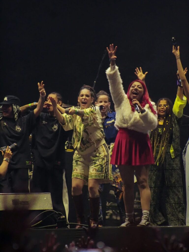 DJ Ninja abrió con un repaso a las pioneras invisibilizadas: Vicky MC, Ana MC, Audry Funk y Leazzy. Después, Ximbo arrancó con El Sueño (2023), a la que se unió Niña Dioz con Rompe el Cristal. La frase retumbó fuerte: “Si estamos juntas no nos pueden parar”.